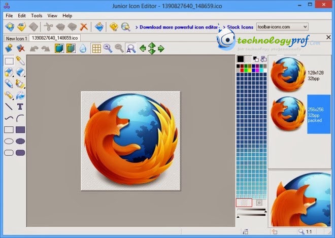 with Junior Icon Editor, you can design new icons or edit other icons and add your artistic touch in extensions (.ico, .png, .xpm, .xbm , .icbr).