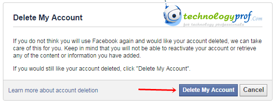 - بعد ذلك اضغط على Delete My Account أو حذف حسابي. كما بالصورة
